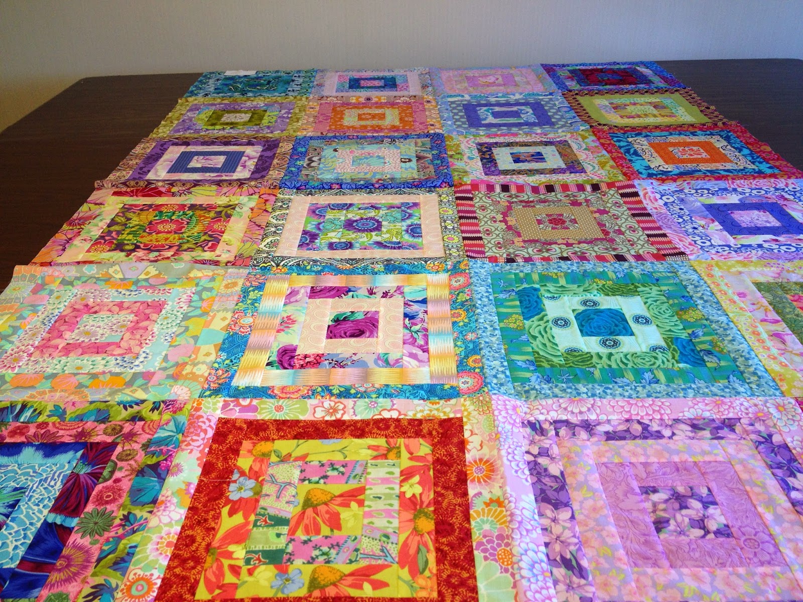 | This block is made up of 1.5 inch squares, cut from Kim's stash. |
