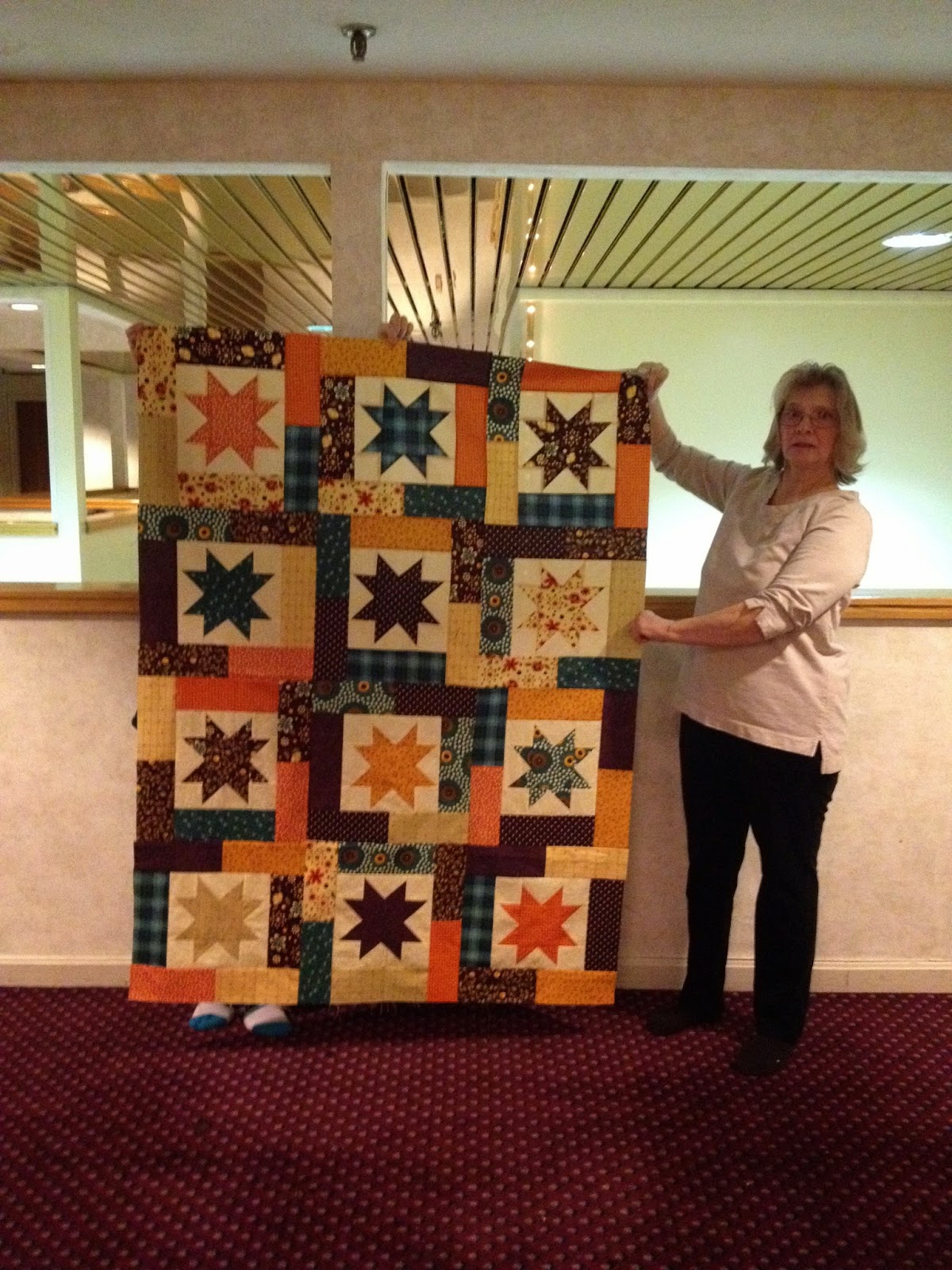 This is Jo Ann E. with one of her favorite patterns, Lucky Stars by Atkinson Designs. Jo Ann makes this quilt often. I need to make one. I really like this design.
